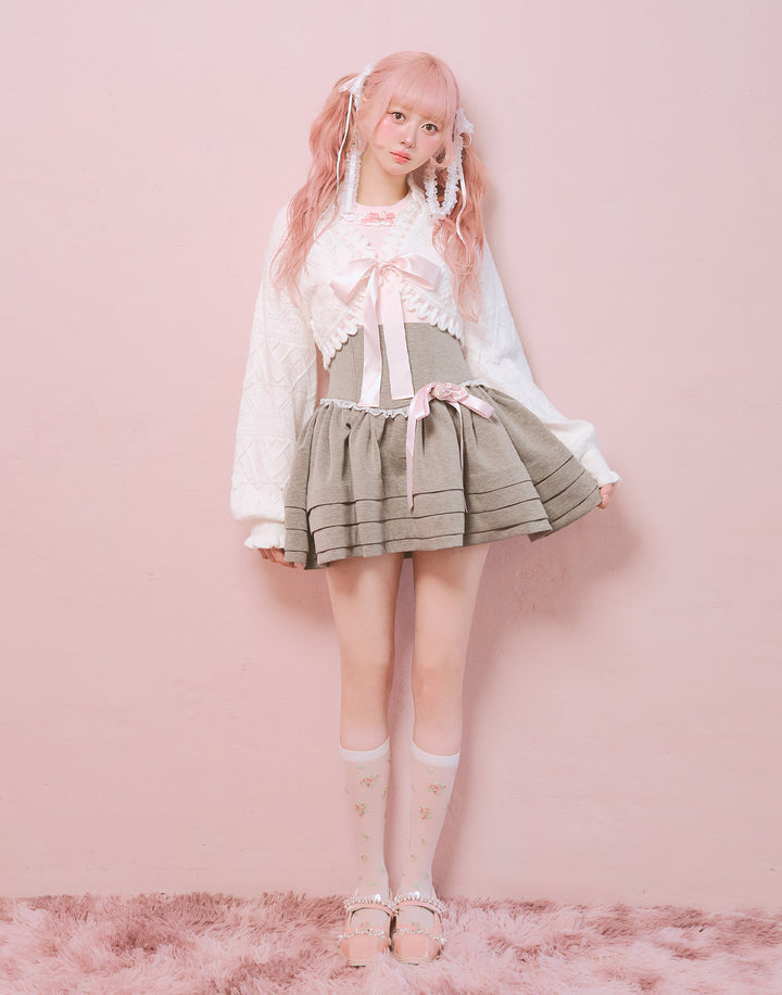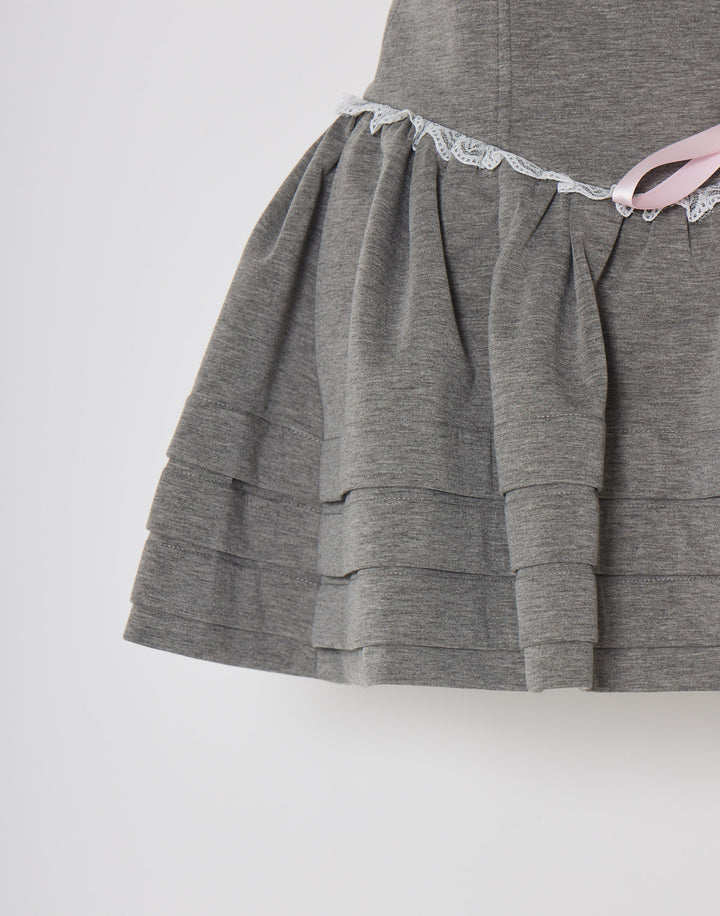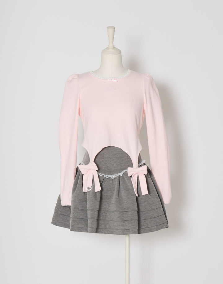 コルセット風のウエストデザインが腰の位置を高く見せてくれるので、スタイルアップ効果も期待できます。