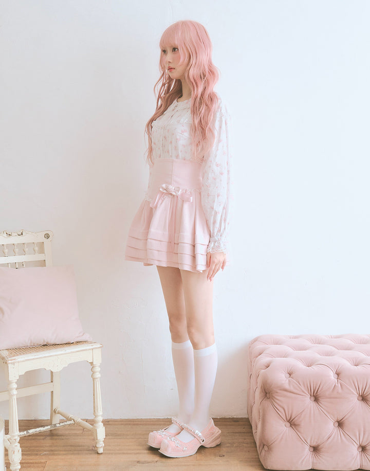 ハリ感のある素材でホイップクリームのようなふんわりとしたシルエットのスカート。