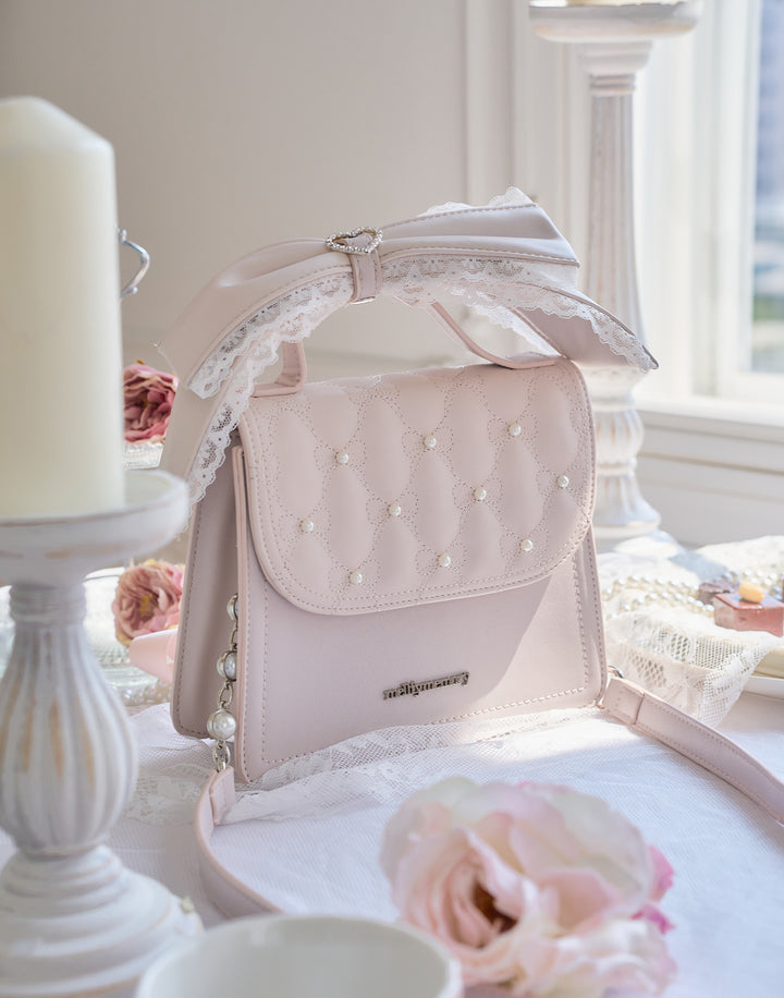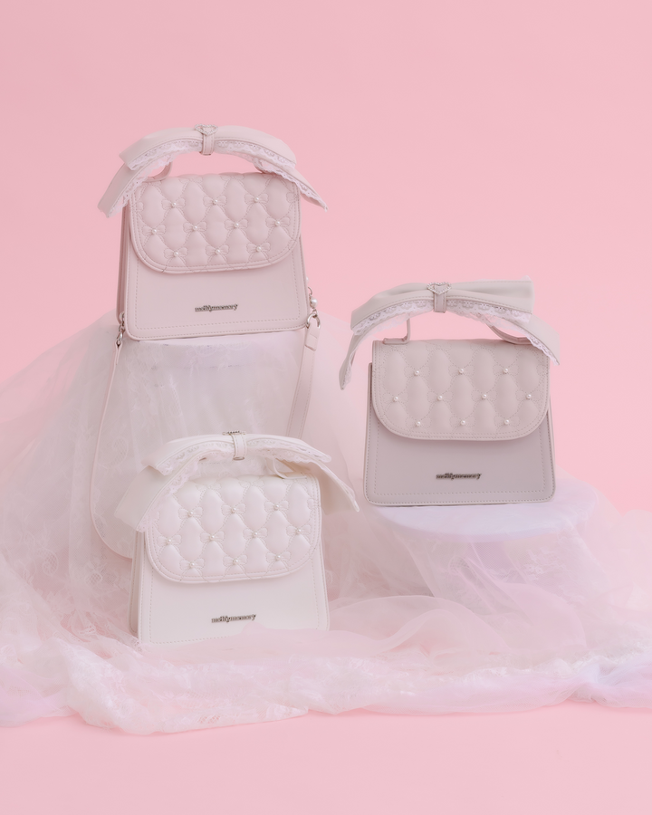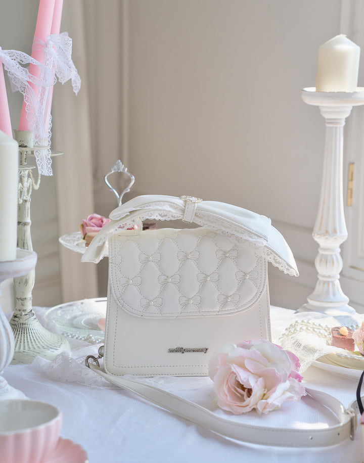 特別なリボンキルティングと持ち手の大きなリボンが、レディな仕上がりのバッグです。持ち手のリボンやショルダー紐は取り外し可能なので、コーディネートや気分に合わせて使いまわしのしやすいデザインになっています。もちろん収納力もしっかりあるので、荷物が増えがちな夏のお出かけにもおすすめです。