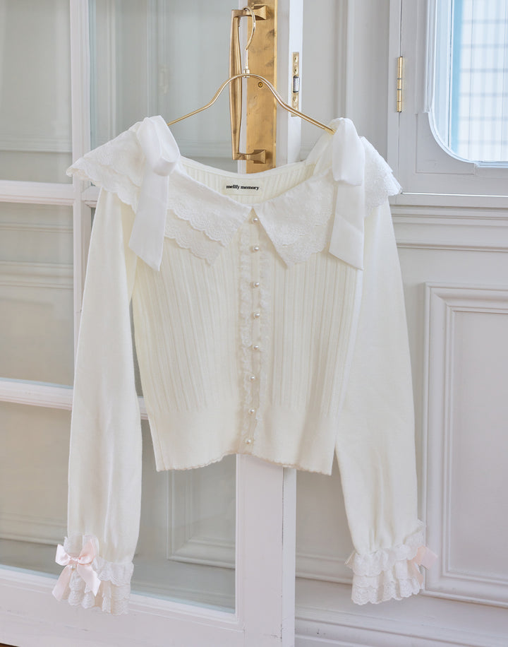 デコルテを綺麗に見せてくれるニットトップスです。オフショル風デザインでも肌を見せすぎない上品なデザインでお作りしました。リボンをあしらったカフス付きのお袖で手元までときめく可愛さに。