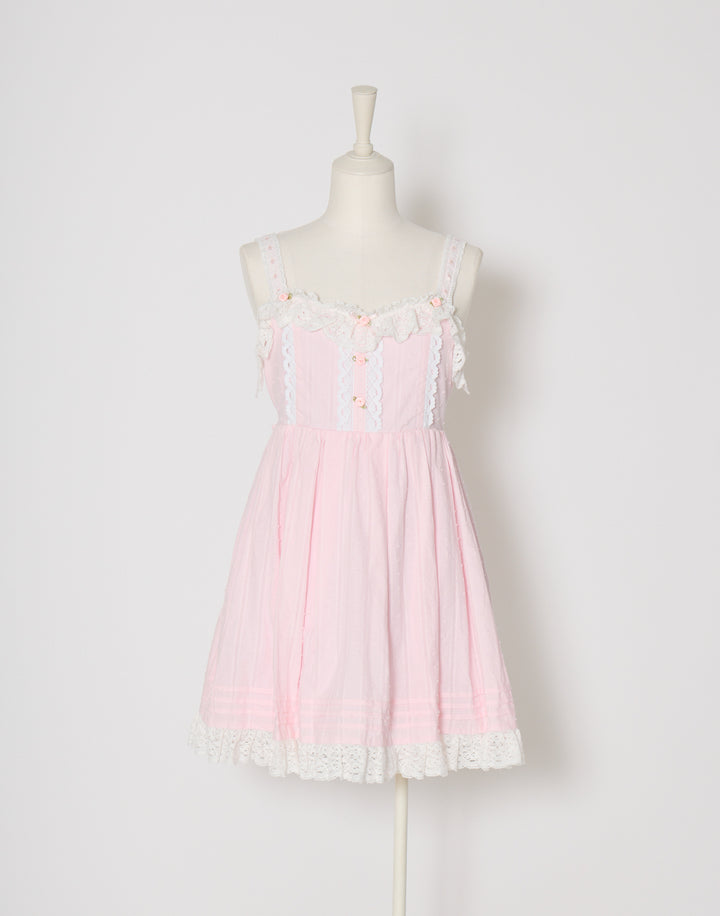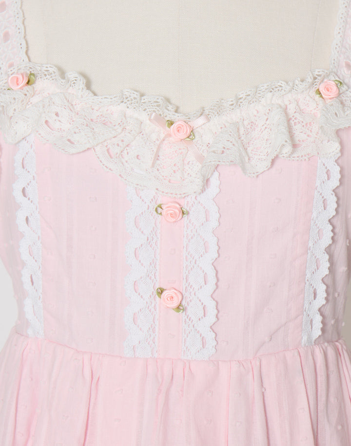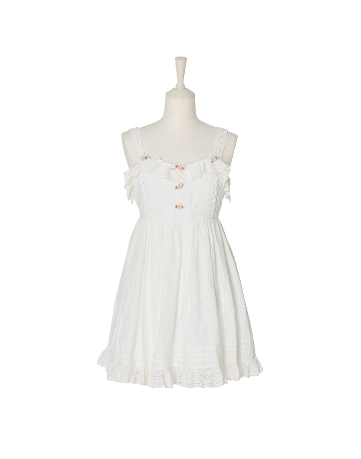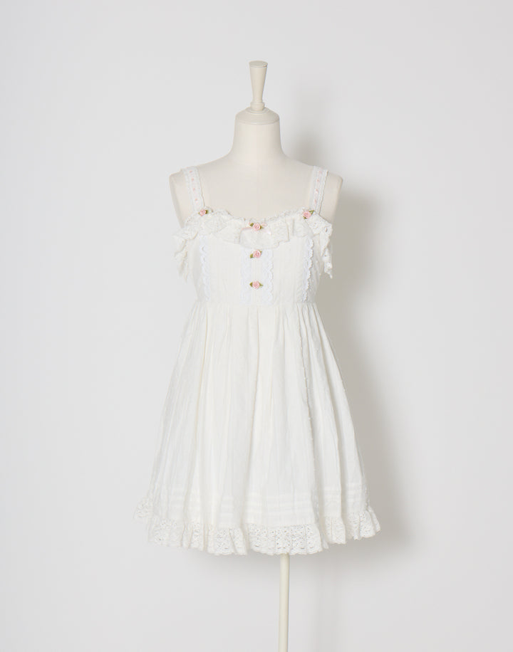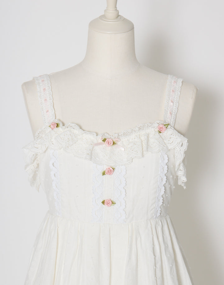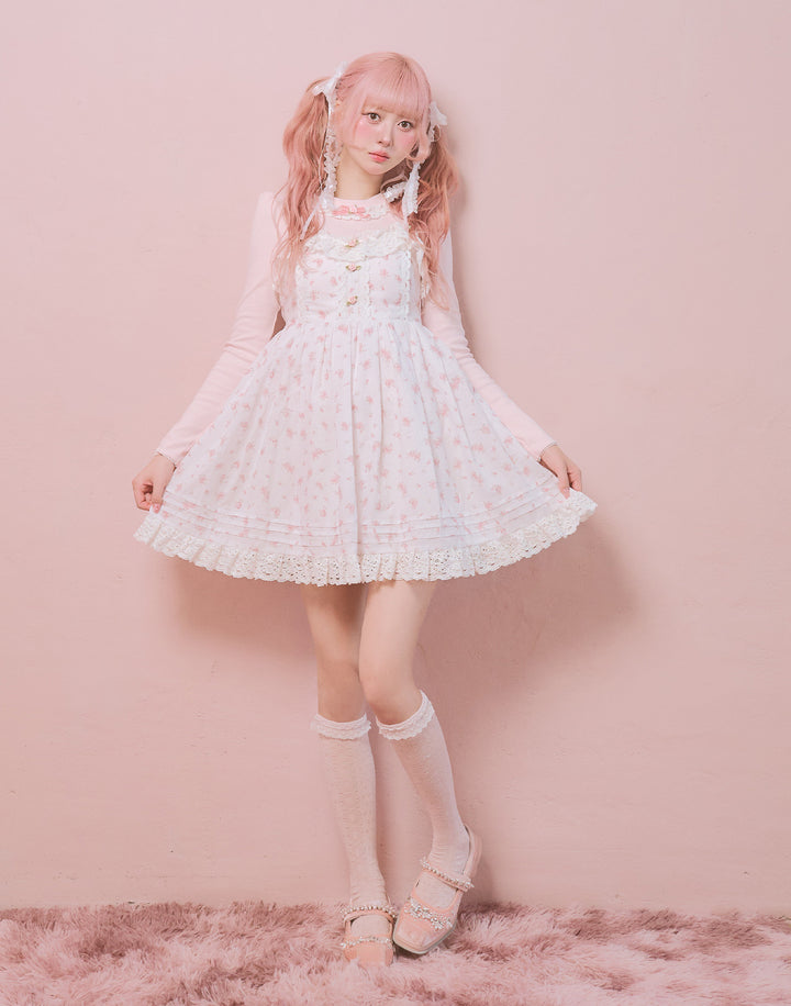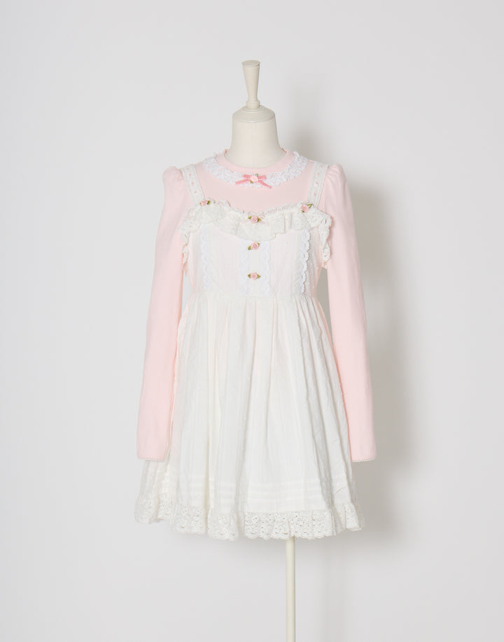 レースとローズをあしらったドーリーなデザインのジャンパースカート。