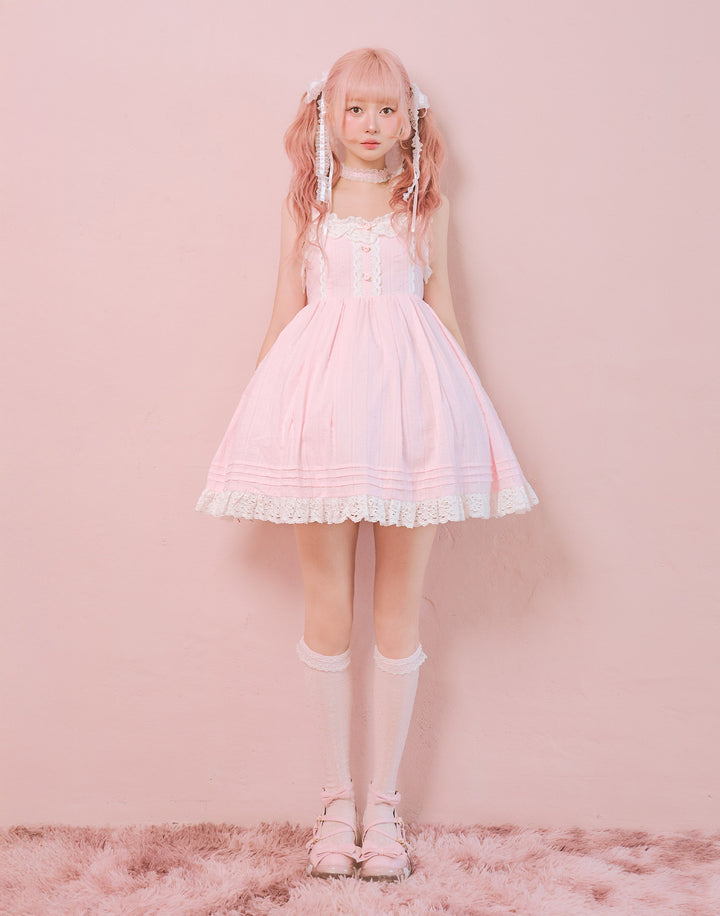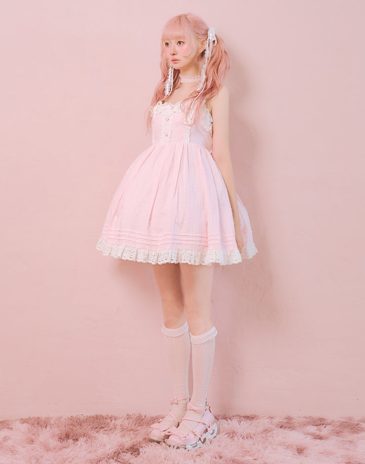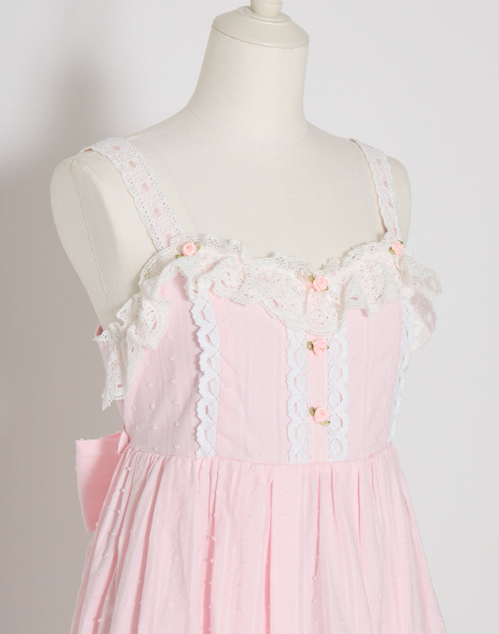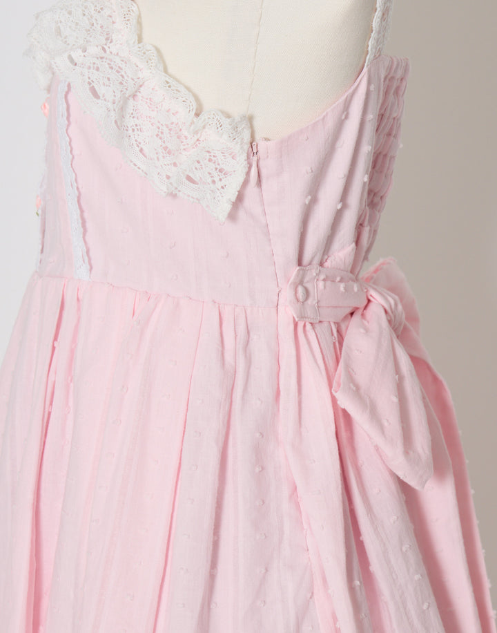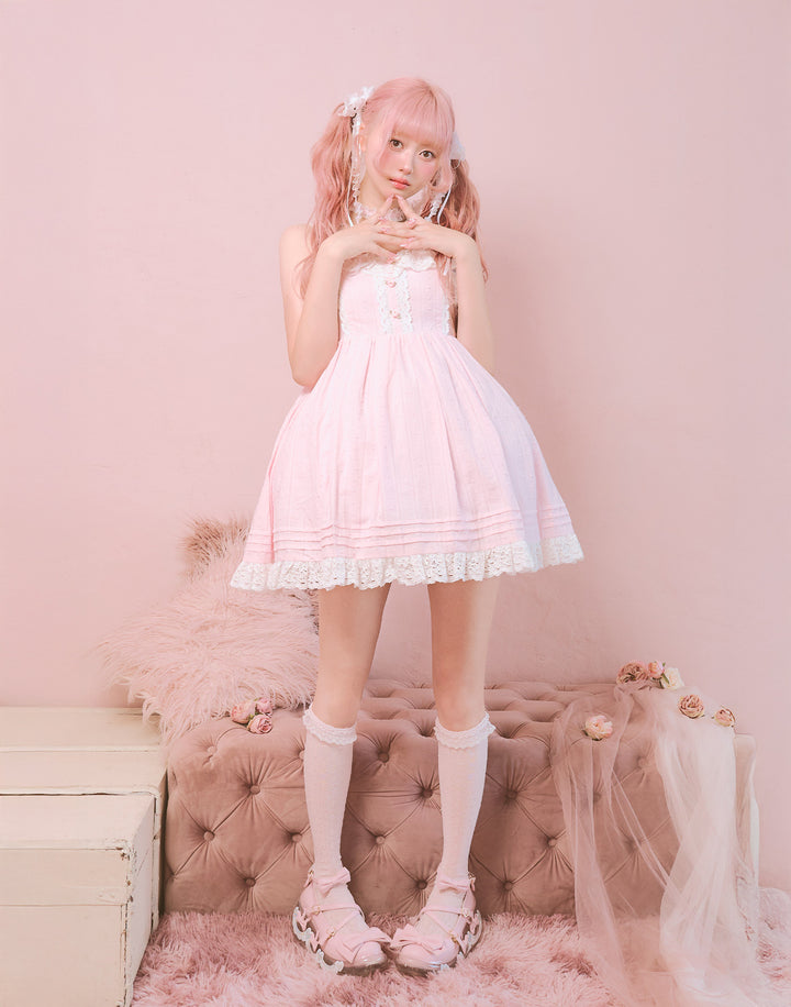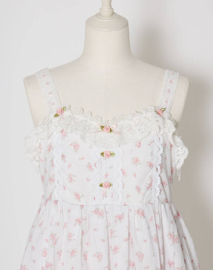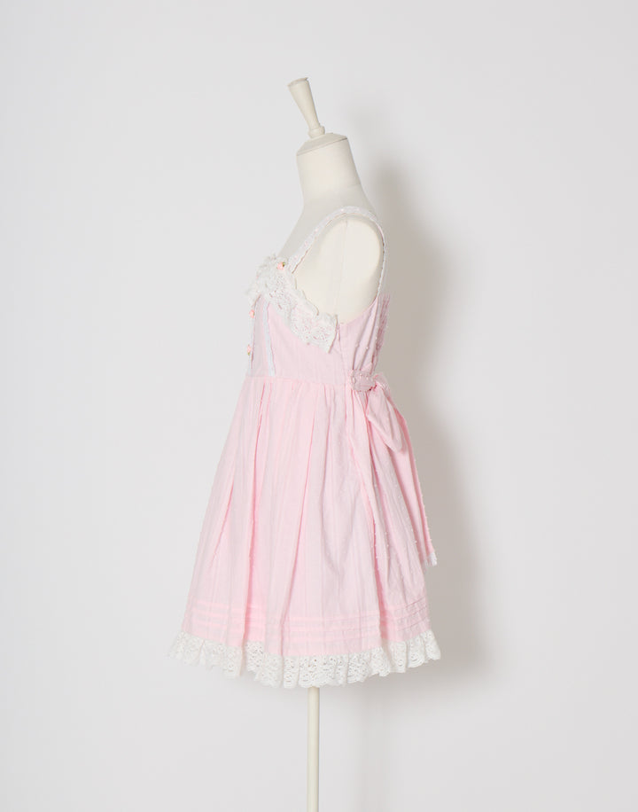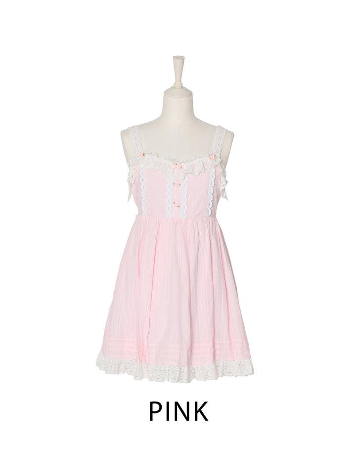レースとローズをあしらったドーリーなデザインのジャンパースカート。