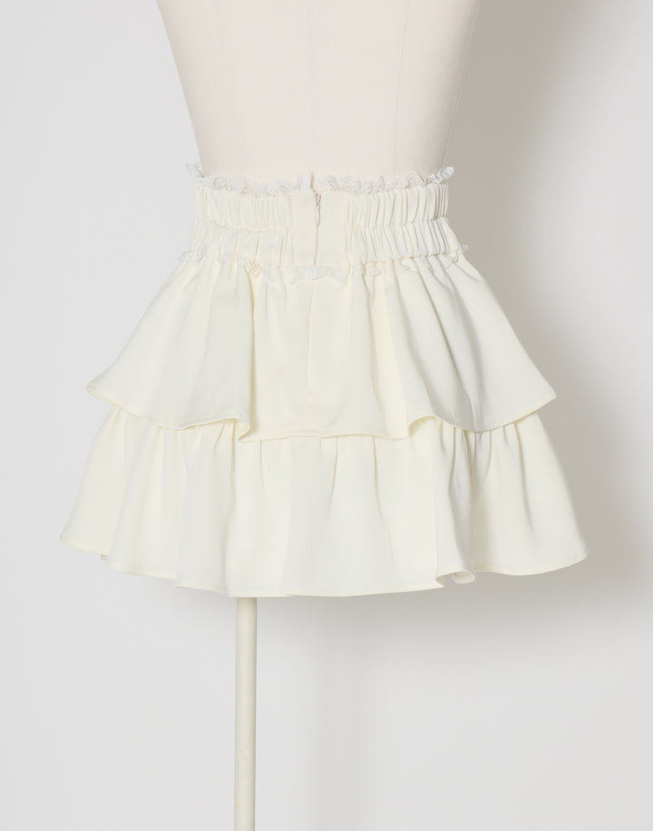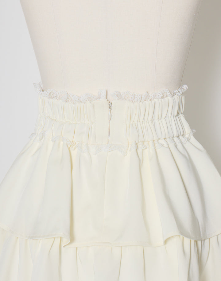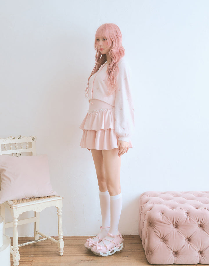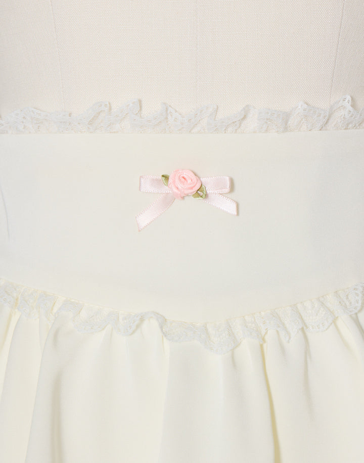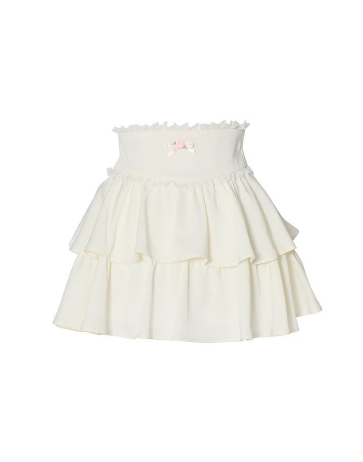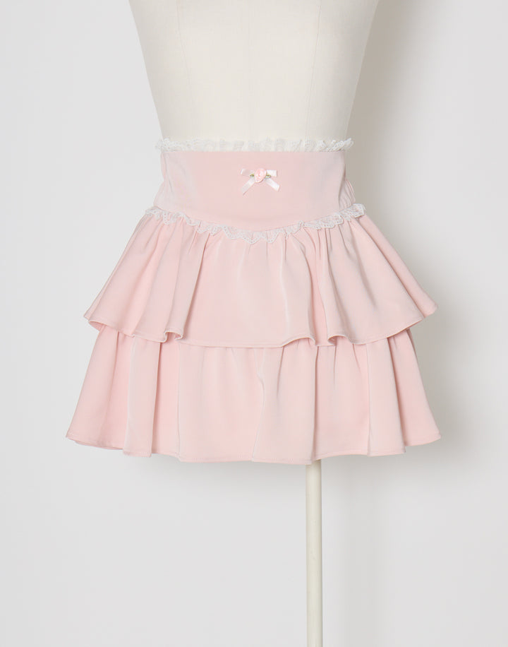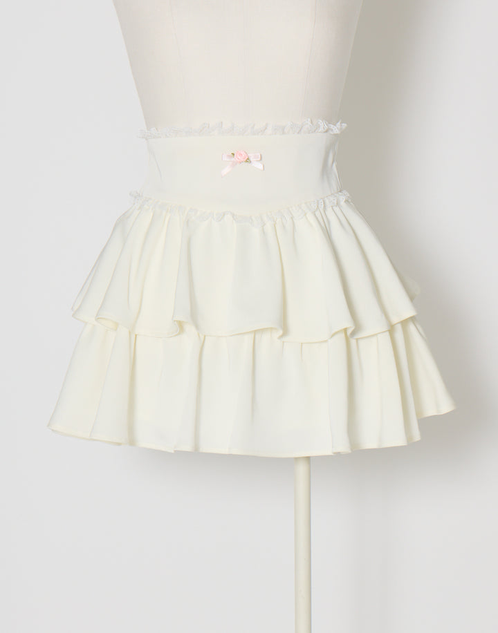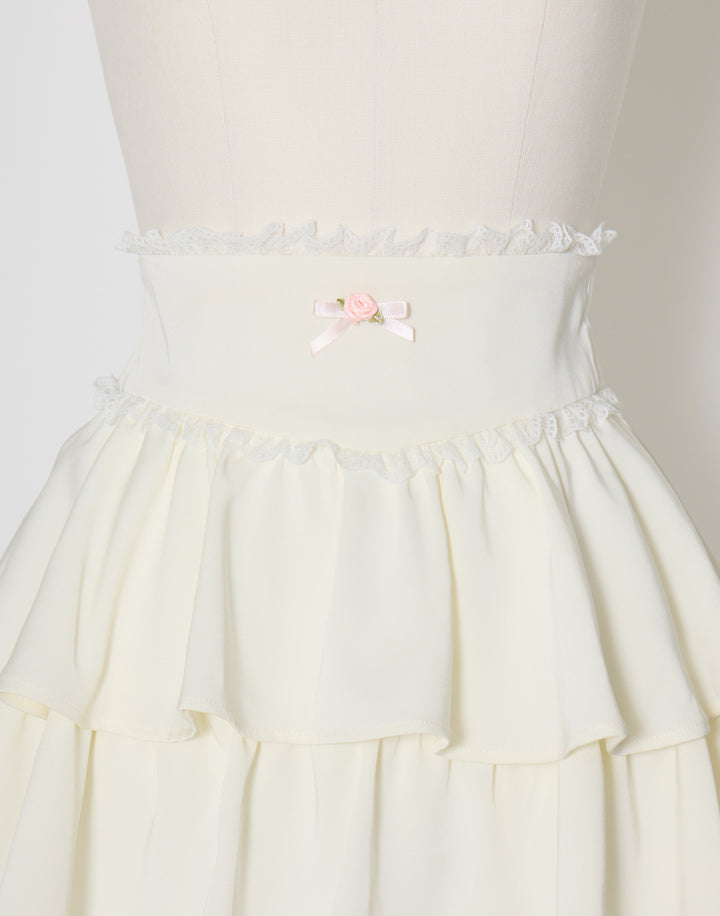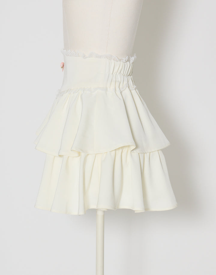 プチローズをあしらったティアードのミニスカート。