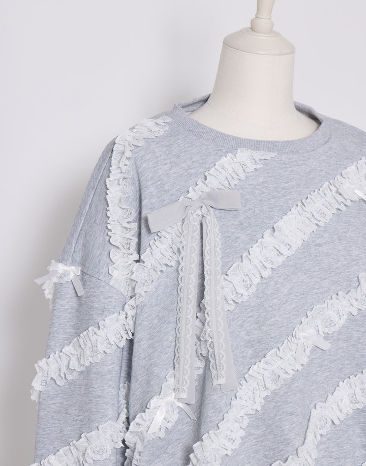 lacy ribbon sweatshirt/Lolime
