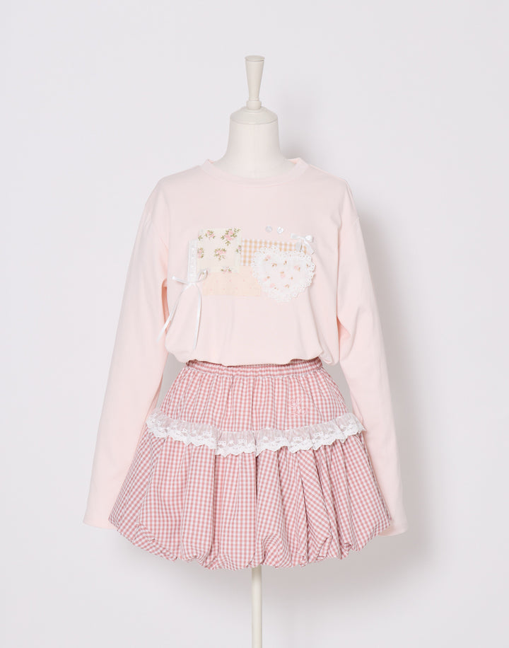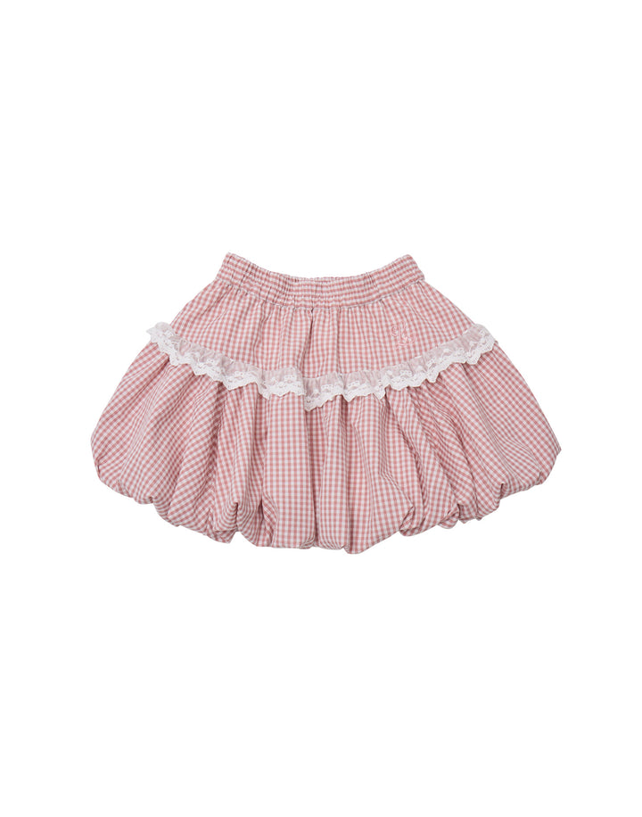 流行りのバルーンスカートにLolimeらしくリボン柄のレースをあしらいました。ウエストは全ゴム仕様で、通年使いやすいドット柄と、冬らしく落ち着いたピンク色のギンガムチェック柄をご用意しました。